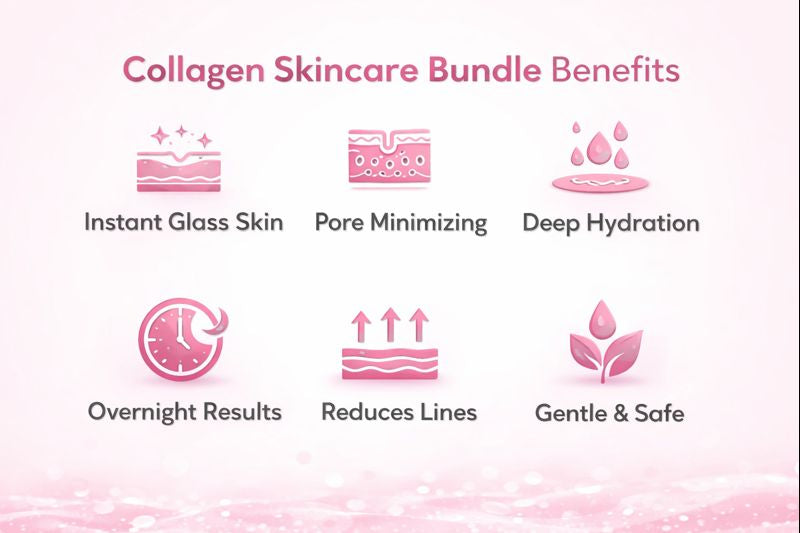 This carefully curated bundle combines popular K-beauty style formulas focused on collagen support, barrier-strengthening hydration and glow-boosting ingredients, helping to restore a fresh, glossy, glass-like finish — without heaviness or irritation.
