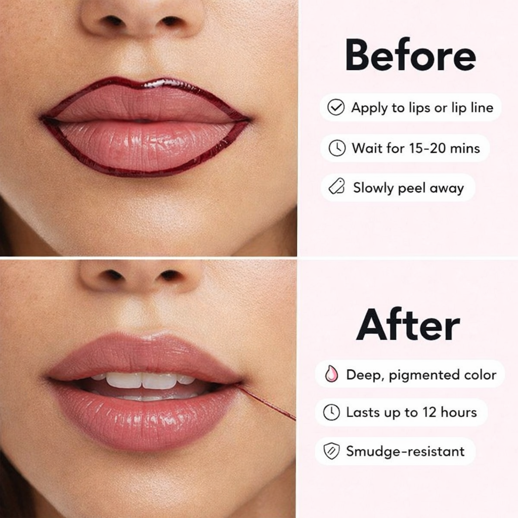 Experience the power of effortless beauty withour Peel Off Lip Stain Liner no smudging, no re applying, no fillers just naturally fuller, flawless lips with real, long-lasting results.